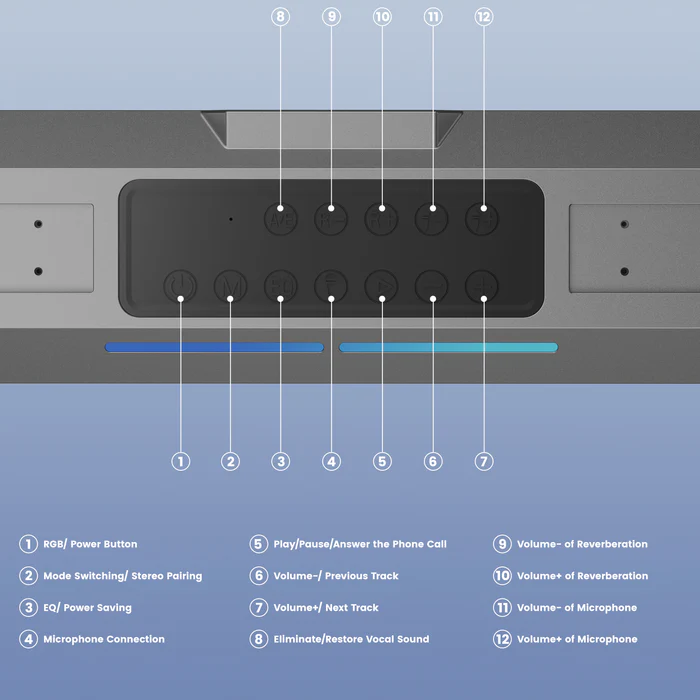 Music: up to 18 hours (when 50% volume and light off) Karaoke: up to 8 hours (when 50% volume and light off) |